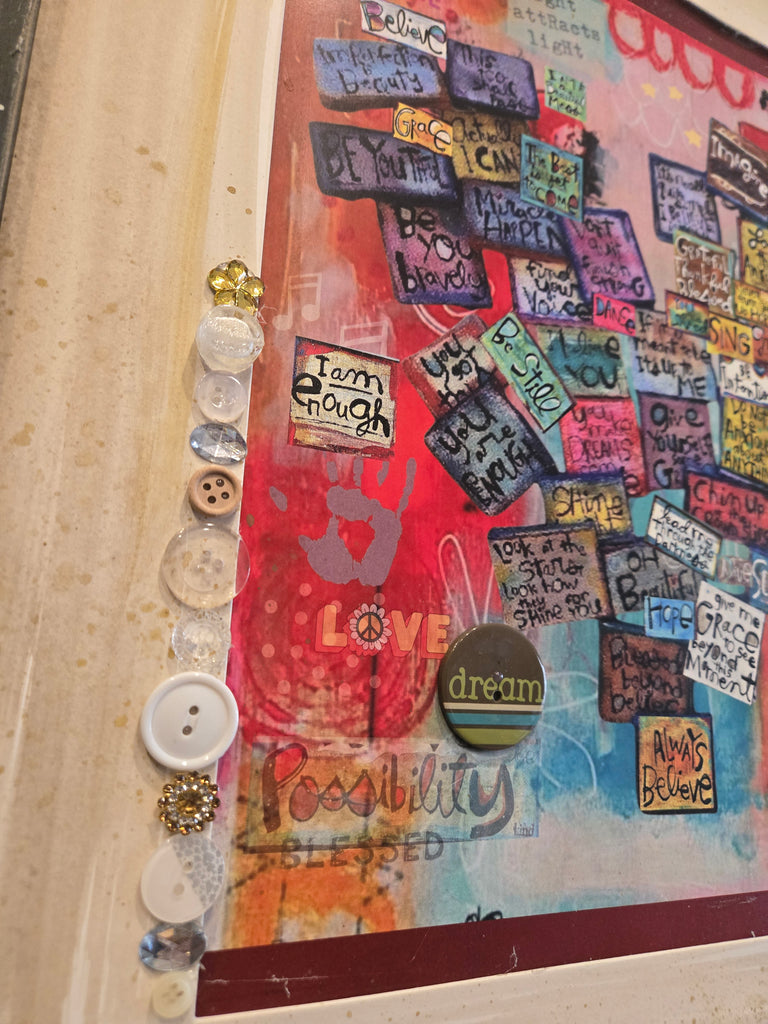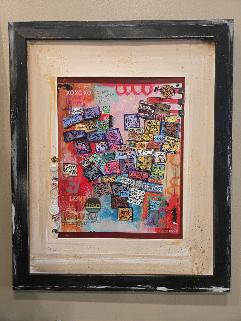Framed ONLY LOVE! 22x18 framed Print, hand painted, Embellished vintage art piece. One of a Kind!